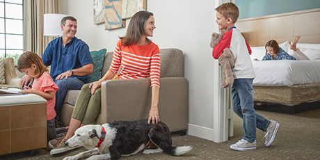 The suites have a private bedroom with one king bed or two queen beds and a living area with a sleeper sofa that's perfect for kids.
